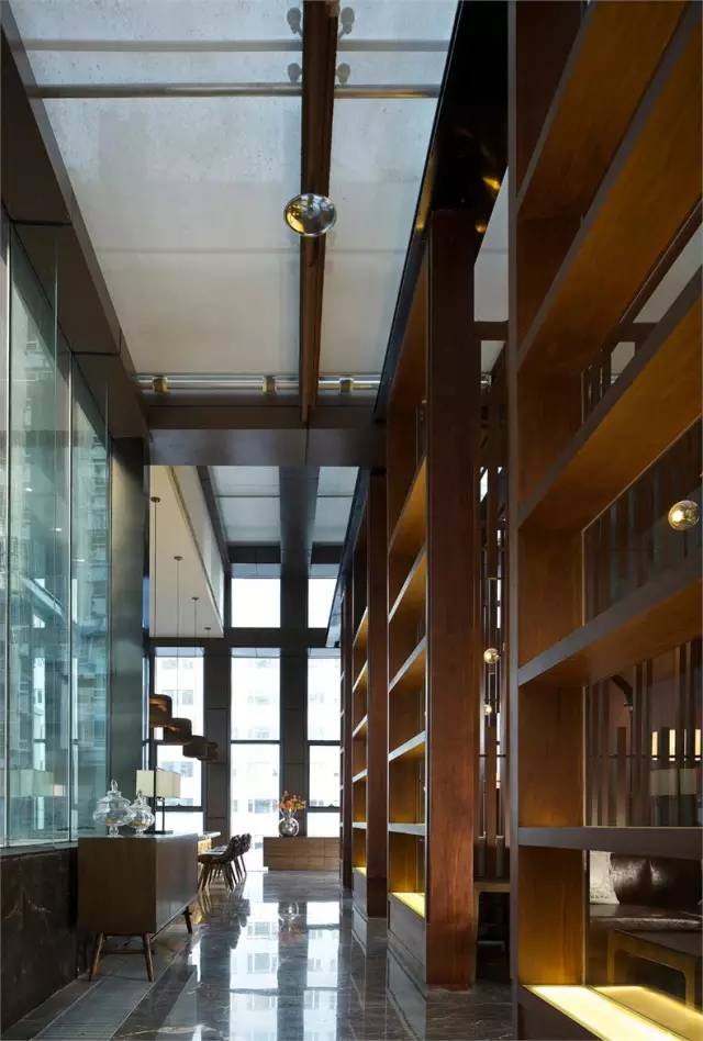 在賦予空間以歷史韻味的同時,現(xiàn)代人追求的舒適、寧靜與美好在這里也得到滿足。陽光穿透玻璃屋頂,似孩童般頑皮的跳過木質(zhì)長廊,這般光與影、明與暗的節(jié)奏和韻律無形中營造出空間的戲劇性。