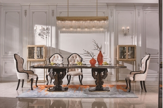 • 意大利極簡(jiǎn)奢現(xiàn)代風(fēng)家具餐廳名貴木飾面餐桌真皮軟包餐桌椅組合