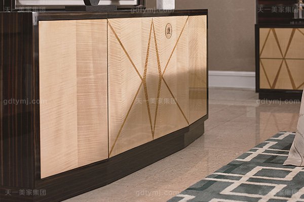 • 高端別墅輕奢家具實木臥室雙人床楓影木皮拼花大床