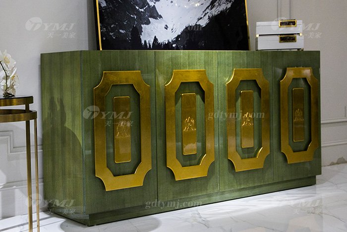 • 高端大氣別墅會(huì)所家具輕奢現(xiàn)代翡翠色實(shí)木邊柜