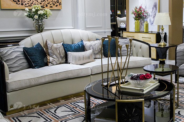 • 輕奢現(xiàn)代家具品牌高端奢華會(huì)所別墅家具客廳實(shí)木黑檀真皮沙發(fā)組合