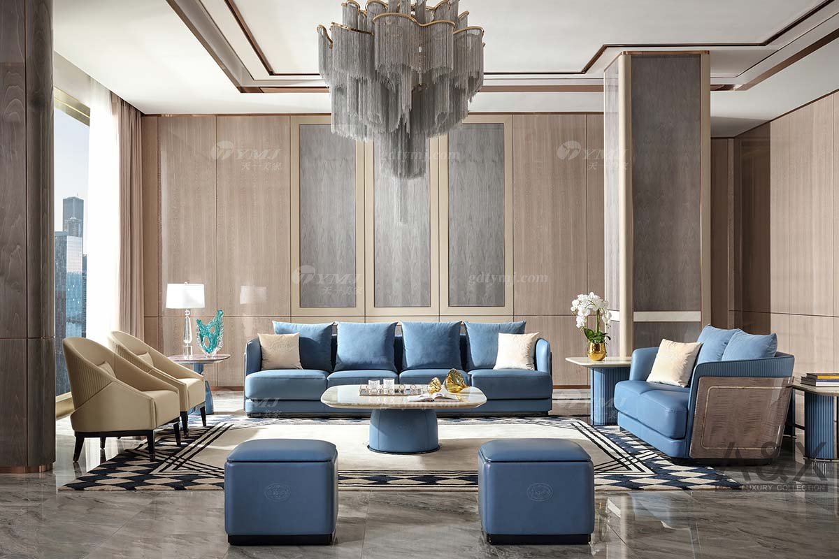 • 高端別墅家具品牌輕奢后現(xiàn)代海圖藍色真皮客廳沙發(fā)組合
