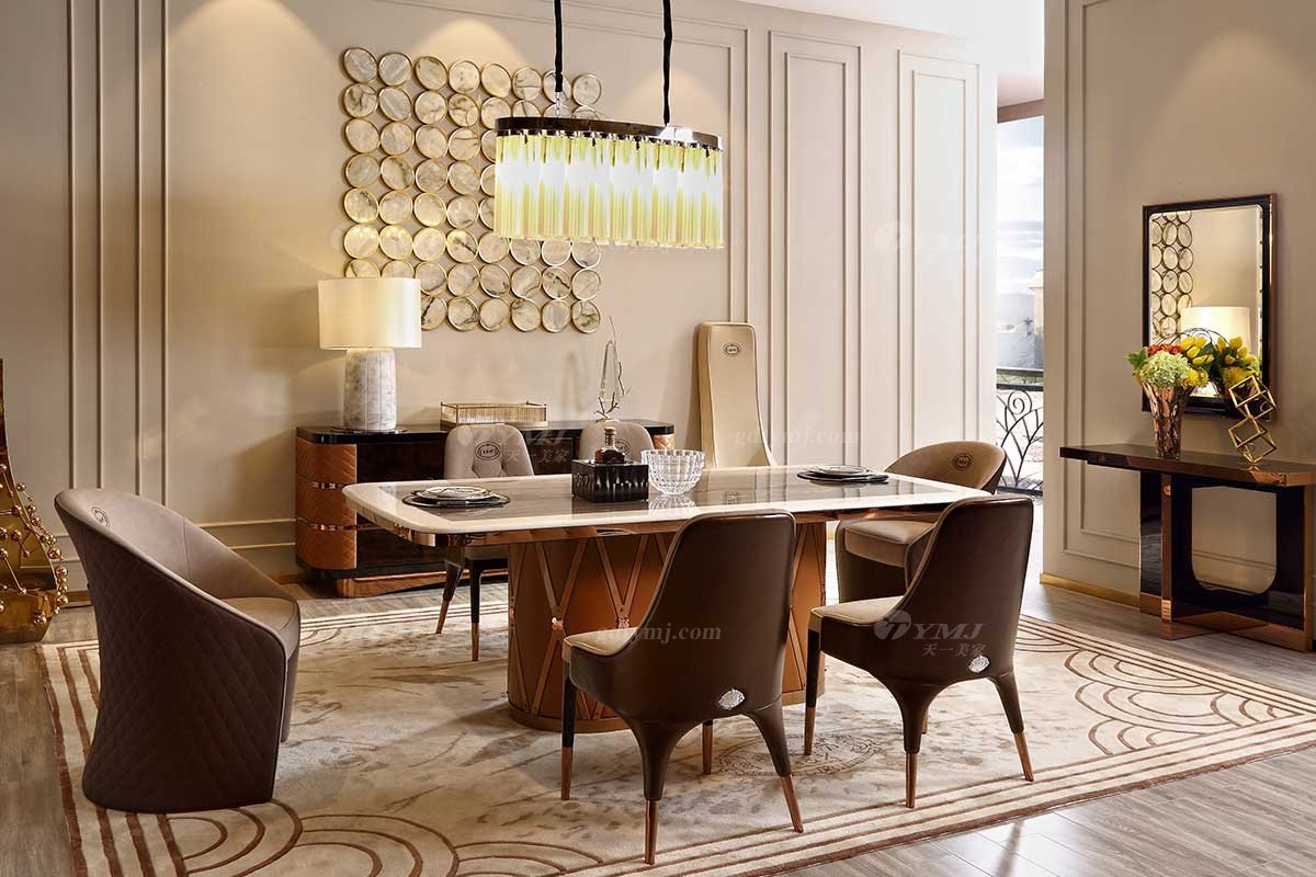 • 奢華會(huì)所家具品牌高端樣板間家具輕奢后現(xiàn)代臥室時(shí)尚餐廳大理石面餐桌餐椅組合