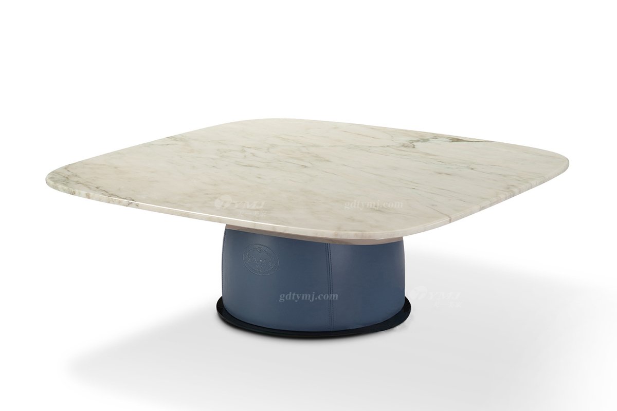 • 輕奢后現(xiàn)代風(fēng)格家具高端會(huì)所別墅品牌家具時(shí)尚客廳魚肚白石面皮藝茶幾
