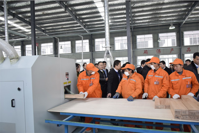 程一董事長(zhǎng)陪同市領(lǐng)導(dǎo)及家具行業(yè)領(lǐng)導(dǎo)參觀木包鋁、鍛條鋁生產(chǎn)線